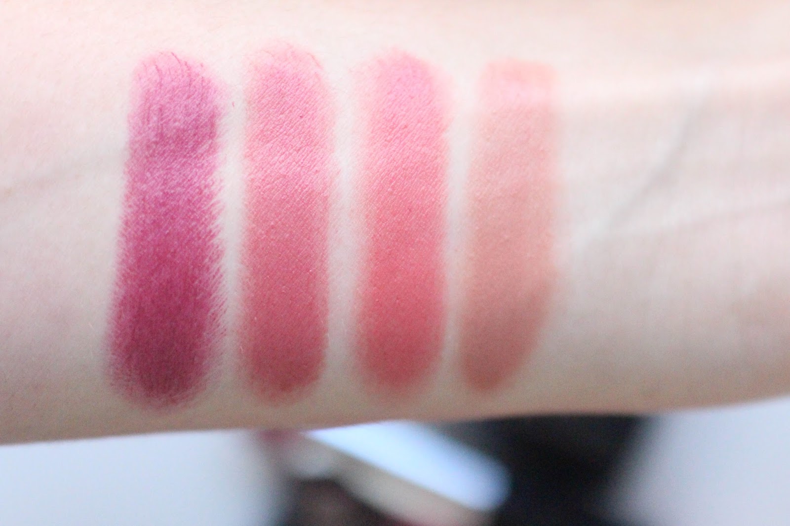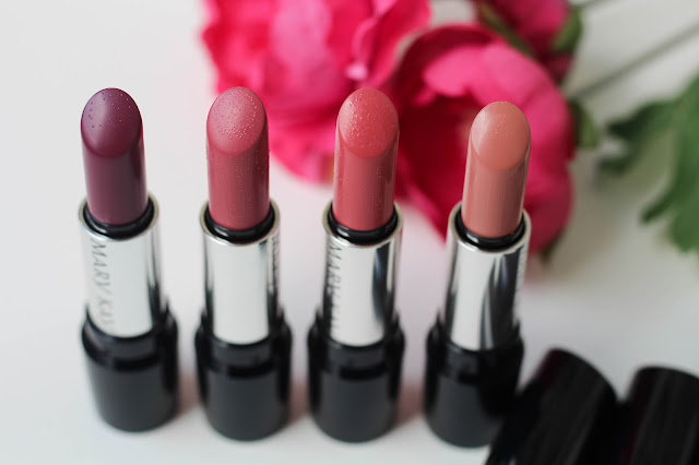 Помады: Bashful You (Нежный поцелуй), Always Apricot (Сочный абрикос), Mauve Moment (Букет сирени), Crushed Berry (Ягодный коктейль).