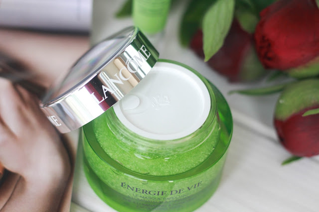 Маска-эксфолиант для лица Énergie de Vie обладает двойным действием: отшелушивает ороговевшие клетки и придает коже сияние. Маска заключена в роскошную стеклянную баночку, лопаточки для нанесения не предусмотрено. А хотелось бы, так как пальцами зачерпывать маску не совсем удобно.
